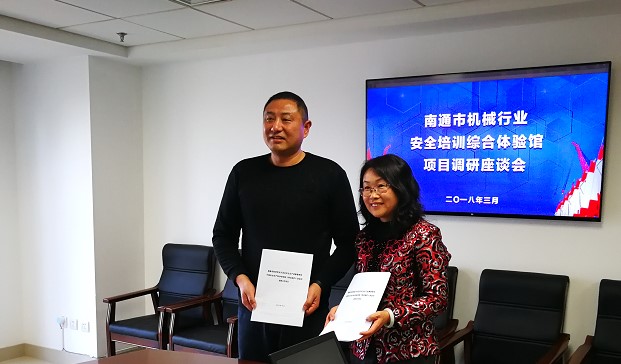 2018年3月8日,南通市经济技术开发区安监局程德春副局长、上海振华重工集团(南通)有限公司副总经理张斌等一行五人来我院调研,并就南通市机械行业安全培训综合体验馆项目进行座谈,院党委副书记毕树柏出席座谈会,科技发展部部长康荣学、工业安全研究所博士孙恩吉、《劳动保护》杂志社社长李志华等同志参加了交流活动。